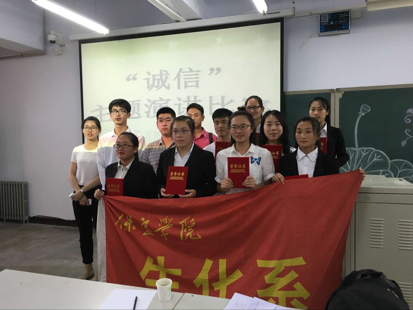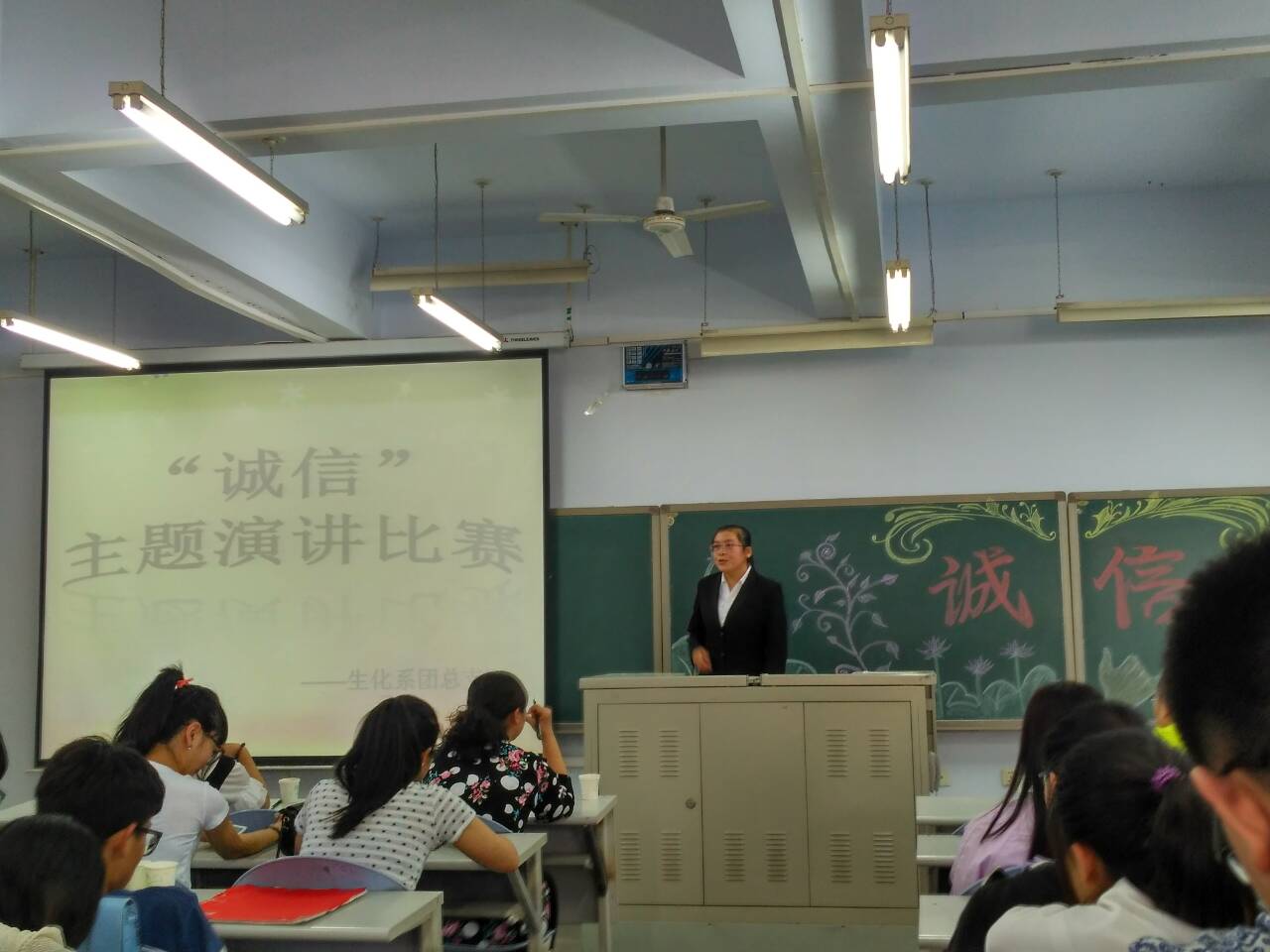 球报体育生化系团总支于2016年5月25日下午两点半在B-309成功举办了以“诚信”为主题的演讲比赛。参加比赛的15名选手经过认真的准备,在主题演讲环节,生动地讲述着关于诚信的故事,并富有激情地表达了自己内心的情感。最后综合评委的评分,评出一等奖一名、二等奖两名、三等奖三名和优秀奖四名。比赛接近尾声时,胡老师对此次演讲比赛进行了精彩的总结,并告诫同学们要做一个守诚信的人。在观众的掌声中,此次演讲比赛圆满结束。