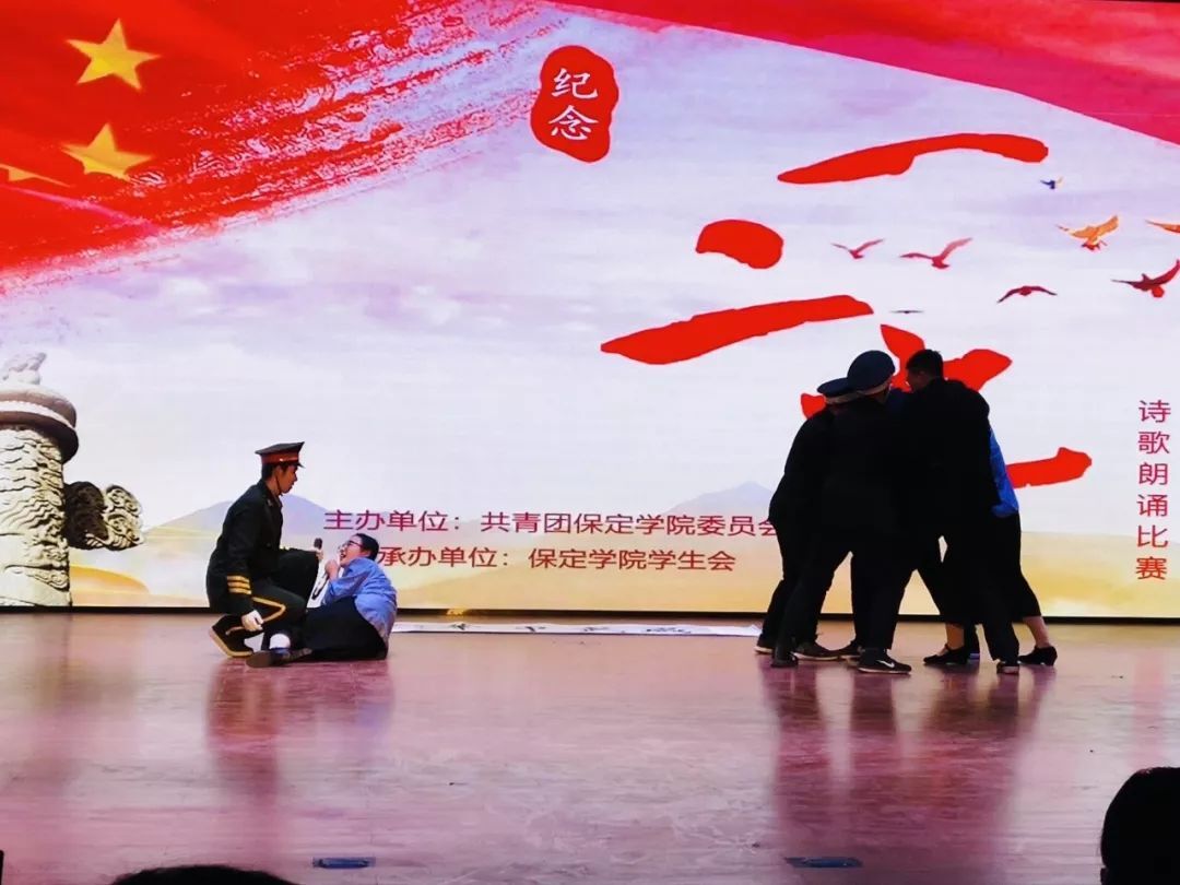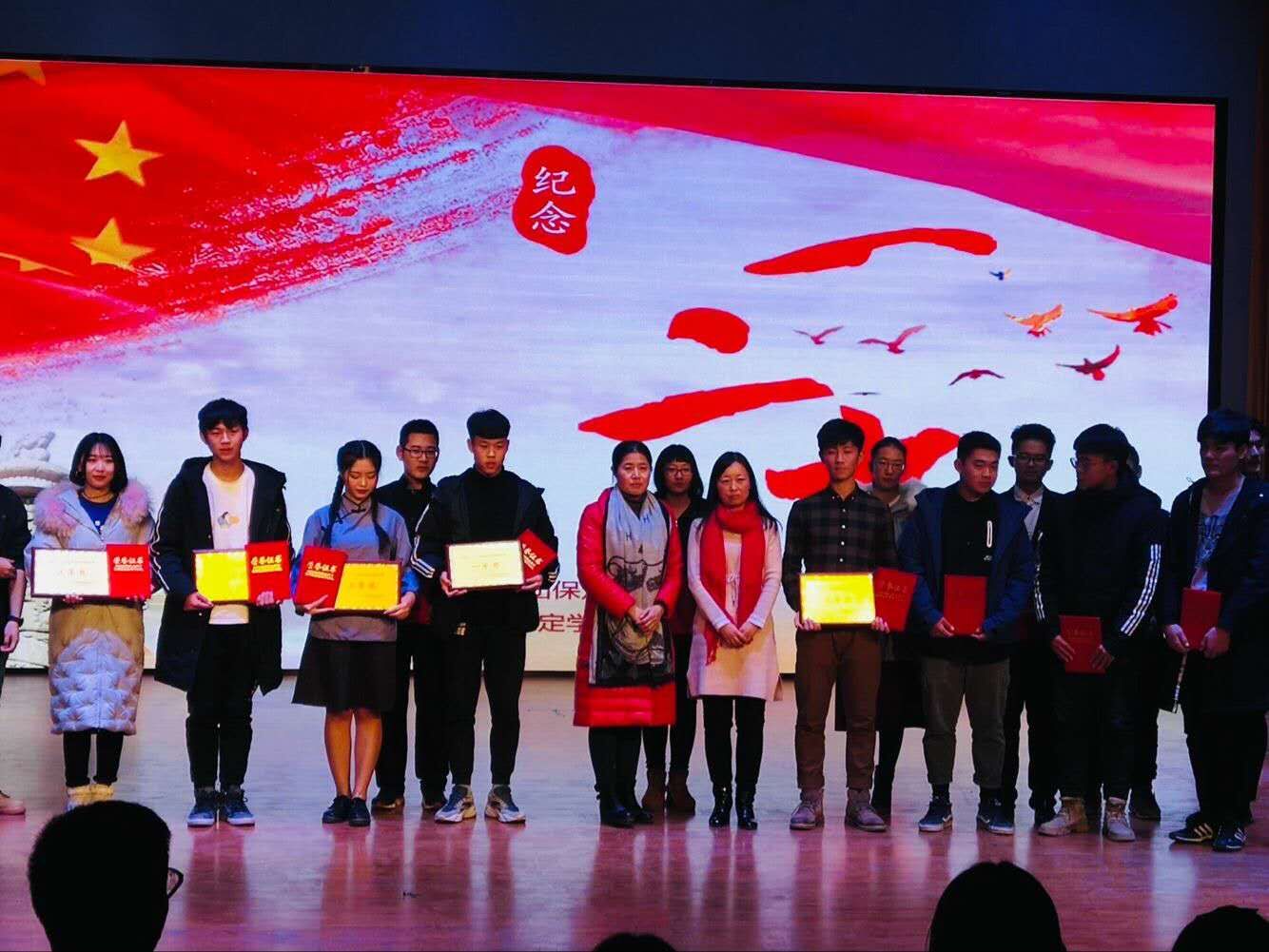 2018年12月7日晚,由校团委主办、校员工会承办的“勿忘国耻 耀我中华”纪念一二·九运动诗歌朗诵大赛在畿辅会堂拉开帷幕,全校14个公司参加了本次比赛。本公司代表队由24人组成。训练时同学们认真刻苦,武术,舞蹈,情景剧的同学们不断完善动作剧情,学长学姐一起帮忙出谋划策,一起努力付出了40多天。比赛时,大家激情昂扬,发挥了最好的水平。最终我公司取得了二等奖的好成绩。