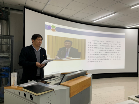 2021年12月22日上午,公司在虚拟仿真实验室召开了“三全育人”专题培训会,公司全体教工参加会议。
