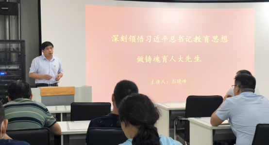 彭书记用“重要基石、中国特色社会主义教育发展道路、立德树人、教师队伍建设、大先生、思想政治工作、师德师风、铸魂育人、系好人生第一粒扣子、人生出彩”十个关键词为主线,重温了十八大以来,习近平总书记在教师节、青年节、重要会议、视察中关于教育的重要讲话和论述,通过一个个重要讲话、一次次互动交流感受总书记对教育的特别关注,领悟习近平总书记的教育思想和“教育观”,明确习近平总书记教育思想是引领中国教育改革发展的方向,是办好人民满意教育的根本遵循。