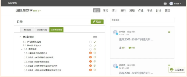 经过与老师、同学们多次线上沟通交流,尝试各种教学平台和软件,结合细胞生物学课程特点,我最终确定采用“腾讯课堂直播+学习通平台”的开课模式,将QQ群直播作为备选方案。课前我发布学习任务、课后布置作业,通过QQ群随时线上答疑。