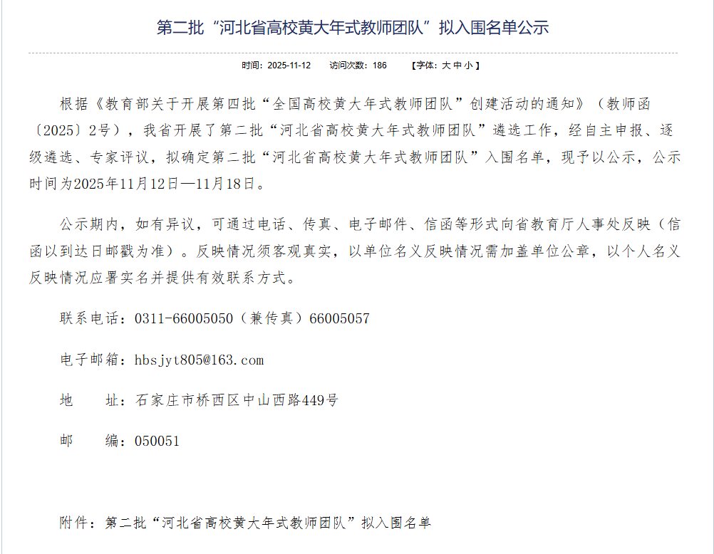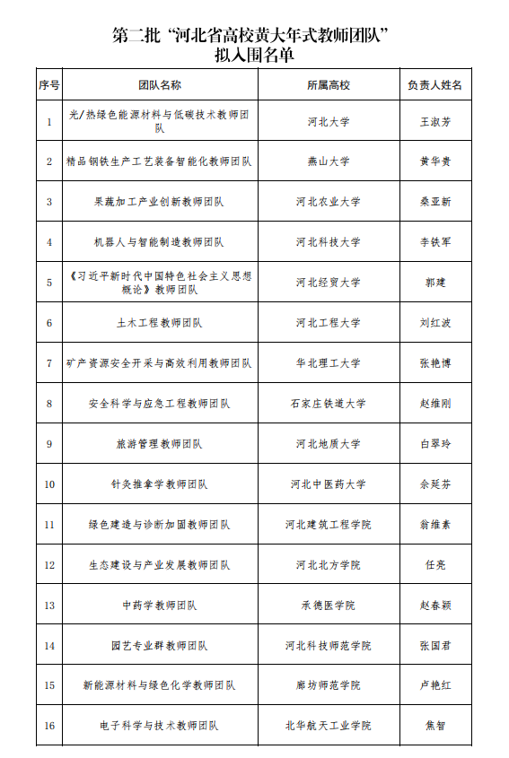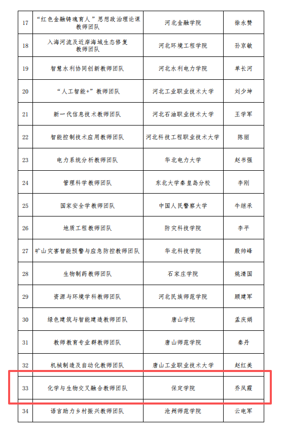 公司“化学与生物交叉融合教师团队”入围第二批“河北省高校黄大年式教师团队”