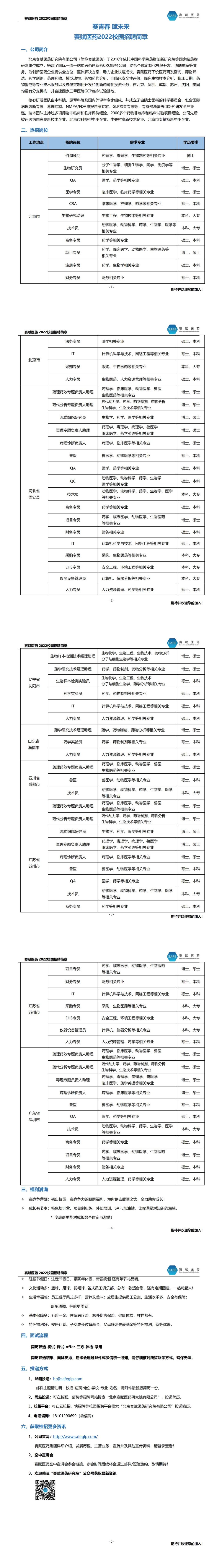 赛青春 赋未来 赛赋医药2022校园招聘简章
