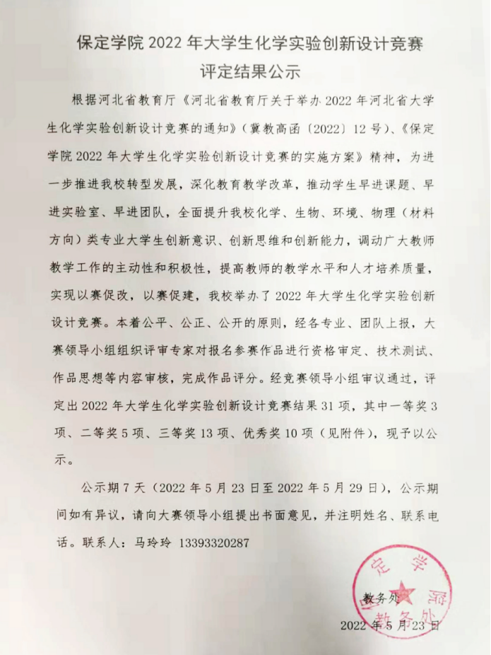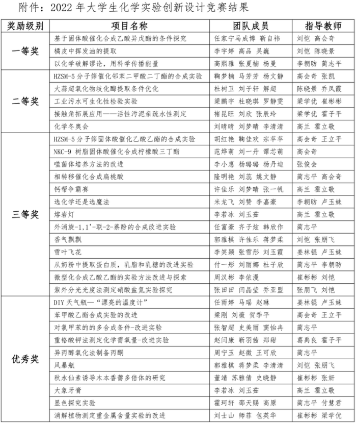 球报体育2022年老员工化学实验创新设计竞赛获奖名单